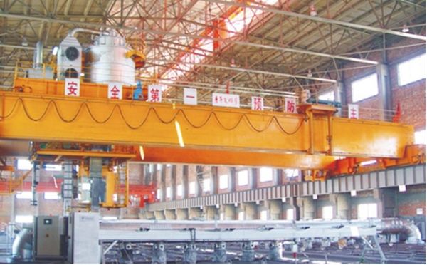焙烧多功能起重机是指具有真空物料输送系统、除尘降温系统、阳极炭块夹钳装置的专用起重机,是服务于阳极炭块焙烧过程的工艺线专用起重机,即是阳极炭块焙烧炉的专用操作设备。
